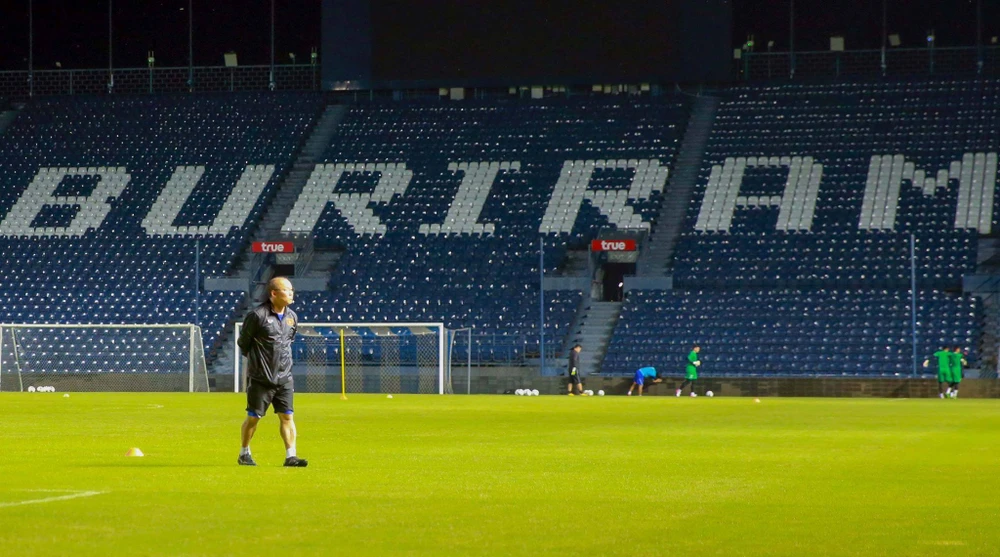Ông thầy người Hàn Quốc tản bộ giữa mặt sân Buriram thênh thang và suy tư trước trận đánh lớn với đại kình địch Thái Lan.