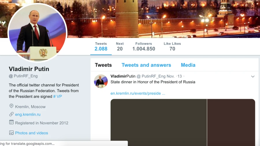 Tài khoản giả mạo Tổng thống Putin được lập ra tháng 11-2012, có khoảng 1 triệu người theo dõi. Tài khoản này chủ yếu đăng hình ảnh, thông tin được dẫn từ nguồn chính phủ Nga về các hoạt động của Tổng thống Putin.