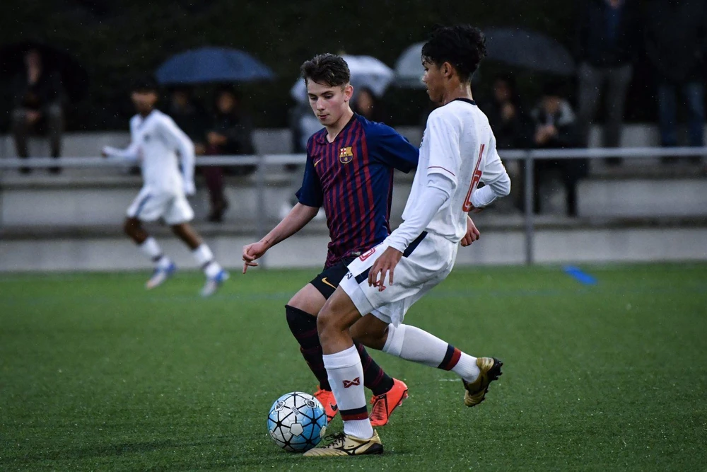 Hai đội ra sân chơi hết mình, ở đây không có sự nhượng bộ nào từ phía U-15 của lò La Masia.