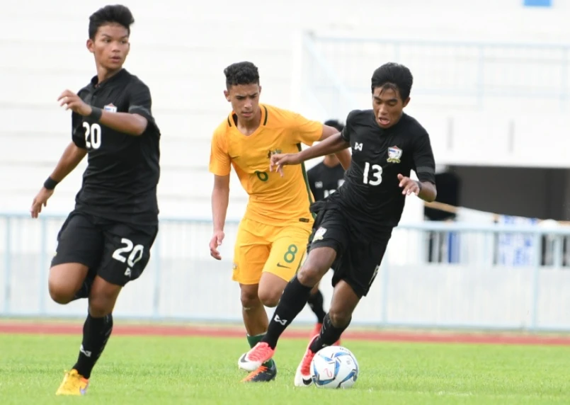 U-15 Thái Lan (đen) với năm trận vòng bảng toàn thắng.