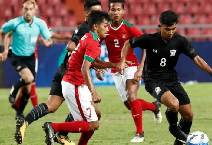 U-16 Indonesia (áo đỏ) đánh bại U-16 Thái Lan 1-0