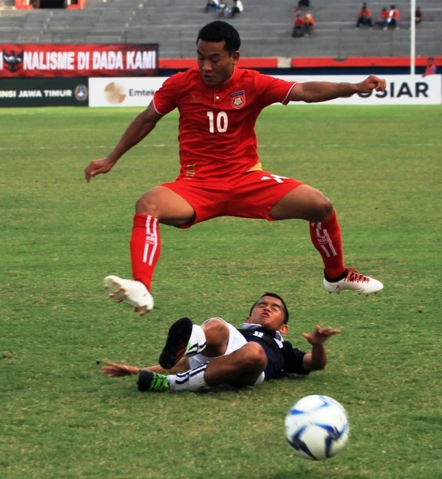 La Min Htwe (10), người mở bàn cho Myanmar trận hòa Việt Nam hôm nay.
