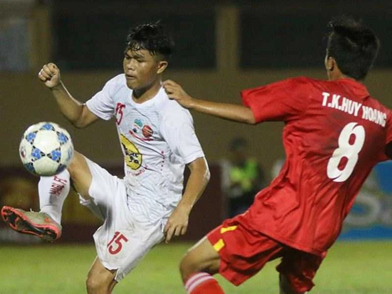 Cầu thủ HA Gia Lai (trái) ở độ tuổi 17 còn non nớt trong sân chơi U-19 quốc tế. Ảnh: CCT