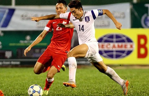 U-19 Hàn Quốc nhỏ tuổi hơn nhưng trên chân hẳn U-21 Singapore và vào chung kết nhẹ nhàng. Ảnh: BTN