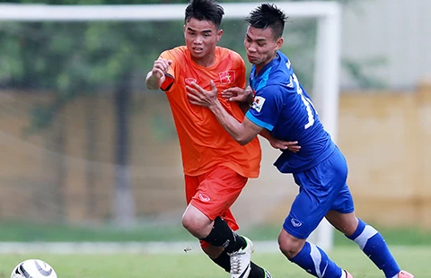 Đội U-19 Việt Nam (trái) sẽ dự giải U-21 và từng có trận hòa giao hữu với đội tuyển Việt Nam. Ảnh: QUANG THẮNG