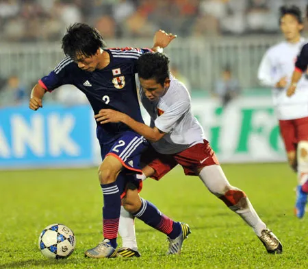 Sự thua thiệt khi U-19 Nhật hơn về đẳng cấp và hơn cả trong sức mạnh. Ảnh: Xuân Huy
