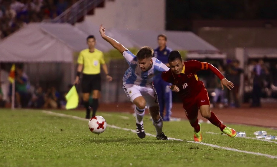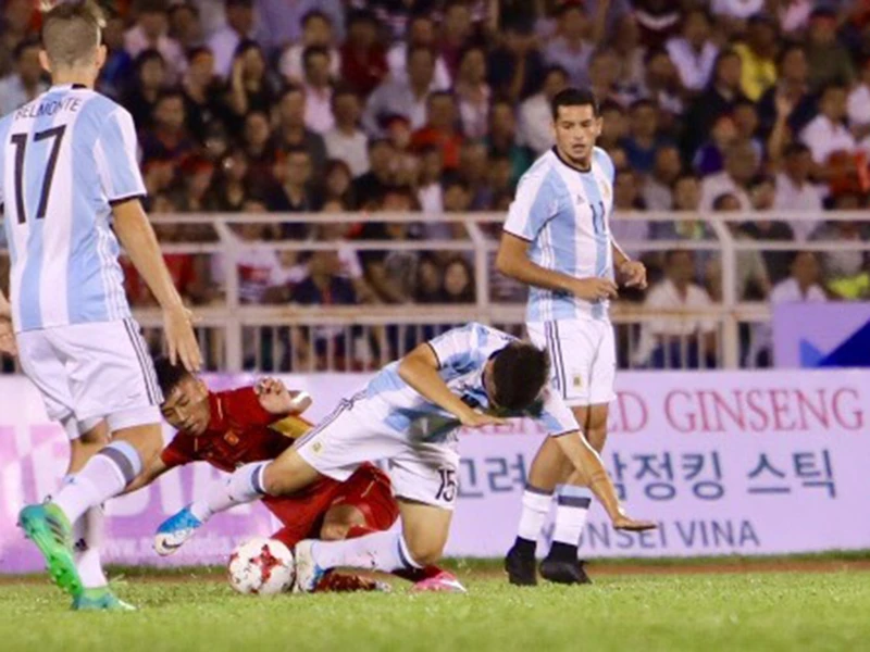 Đội khách Argentina có đẳng cấp vượt trội so với Việt Nam.