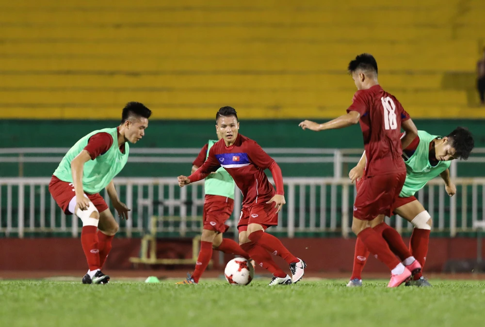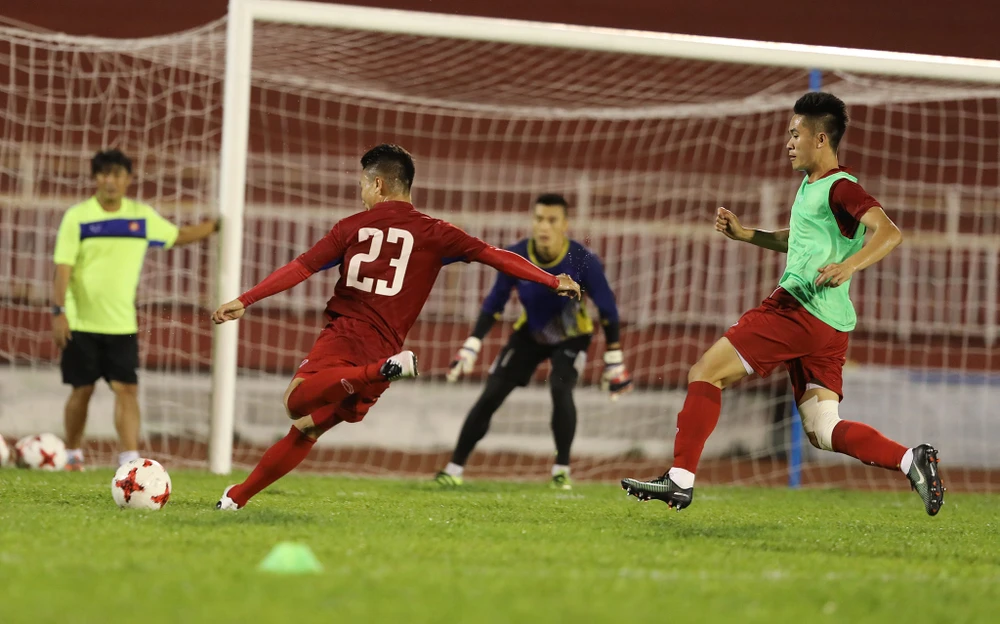 Nhìn các cầu thủ tập không thấy dấu hiệu quá tải, ngược lại họ tập rất sung mãn. Sau khi kết thúc hai hiệp đối kháng các cầu thủ chạy thả lỏng quanh sân năm vòng.
