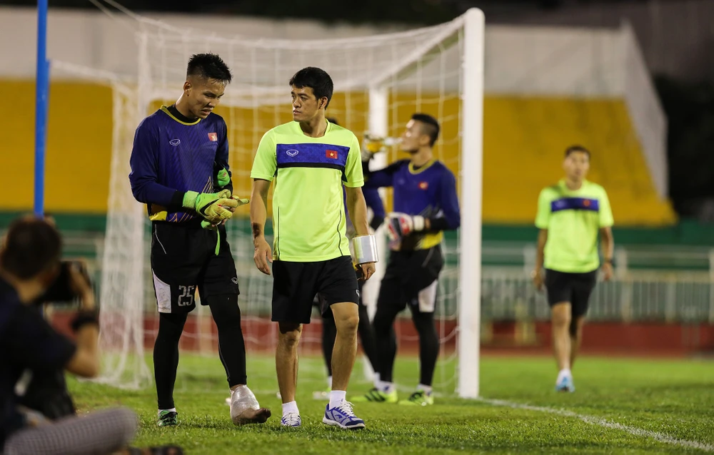 Thủ môn Bùi Tiến Dũng trước những pha dứt điểm của đồng đội