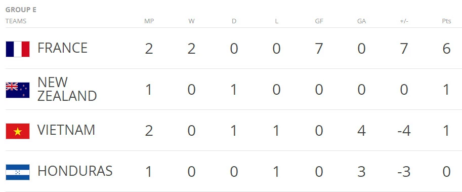 Thắng trận 4-0, U-20 Pháp đã chính thức lọt vào vòng knock-out, còn U-20 Việt Nam buộc phải thắng U-20 Honduras mới có hi vọng giành vé đi tiếp.