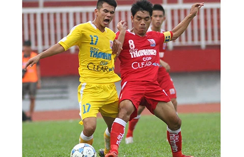 Hà Nội T&T (trái) của thầy trò HLV Minh Đức đang dẫn đầu bảng B thuyết phục hướng tới chỉ tiêu lọt vào trận chung kết. Ảnh: XUÂN HUY