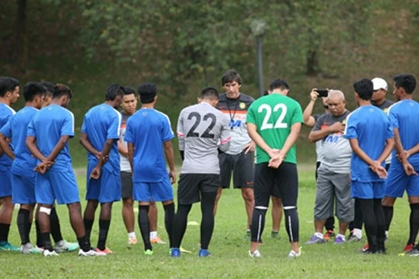 HLV Frank Bernhardt của U-22 Malaysia. Ảnh: PHẠM HUY