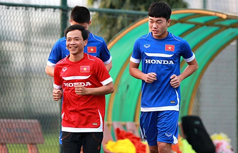 Xuân Trường (phải) sau hai ngày tập riêng đã chia tay các đồng đội vì vết thương cần điều trị dài hạn. Ảnh: QUANG THẮNG