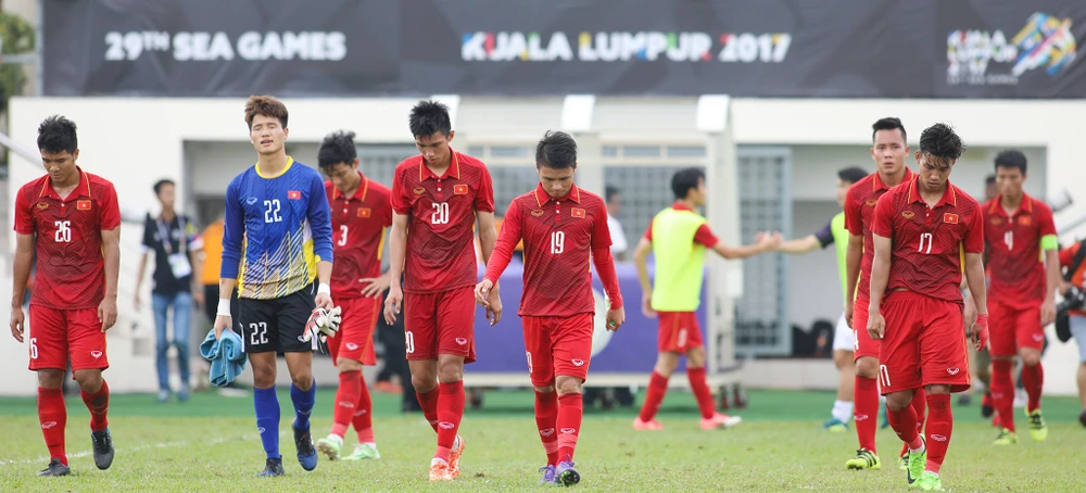 Các cầu thủ Việt Nam thất vọng rời sân.