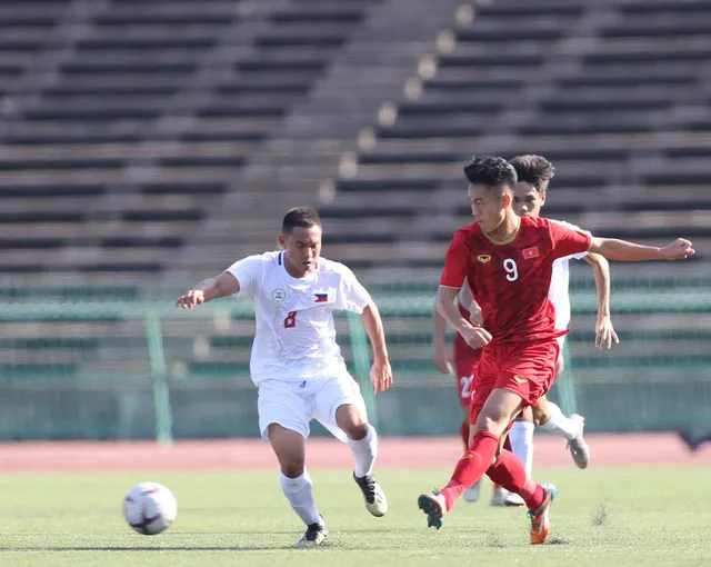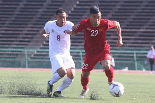Hiệp 1, U-22 Việt Nam bế tắc trong việc tìm đường vào mành lưới thủ môn Michael Cango của Philippines dù thời lượng cầm bóng áp đảo đối phương.