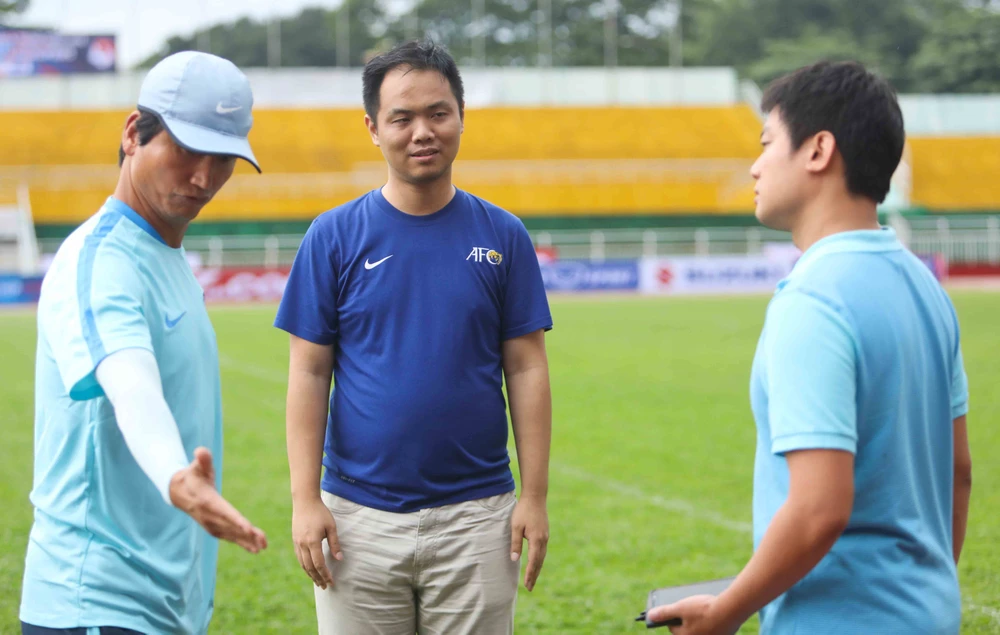 Quan chức AFC (giữa) thiện chí lý giải việc cấm tập.
