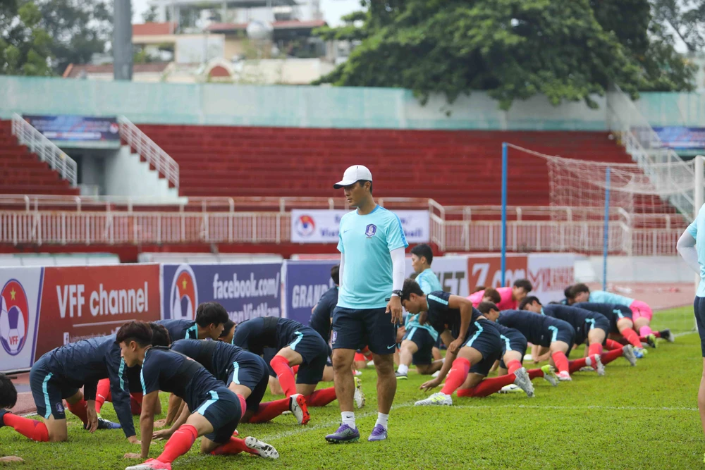Có thông tin toàn đội U-23 Hàn Quốc tiếp tục xuống sân Trung tâm Thể thao CA TP.HCM để tập.