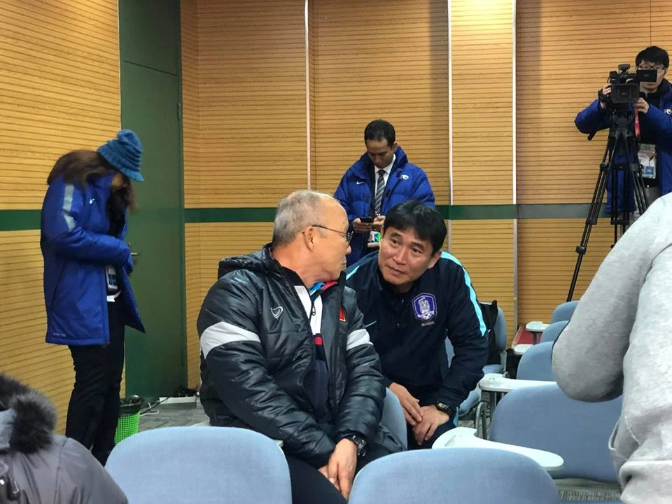 Trong khi đó chiến lược gia Hàn Quốc của U-23 Việt Nam Park Hang-seo thì nói: “Trận đấu chiều nay là một... người Hàn Quốc chống lại đội Hàn Quốc. Tôi cũng có chút lo lắng về trận đầu ra quân, song tôi tự tin về phần chuẩn bị của mình. Tôi không có thông tin đầy đủ về U-23 Hàn Quốc vì họ chuẩn bị kín quá, bí mật quá nhưng là một người Hàn Quốc, tôi có đầy đủ kiến thức lẫn thông tin về đội U-23 Hàn Quốc, nhất là cách chơi đặc trưng của họ như thế nào”.