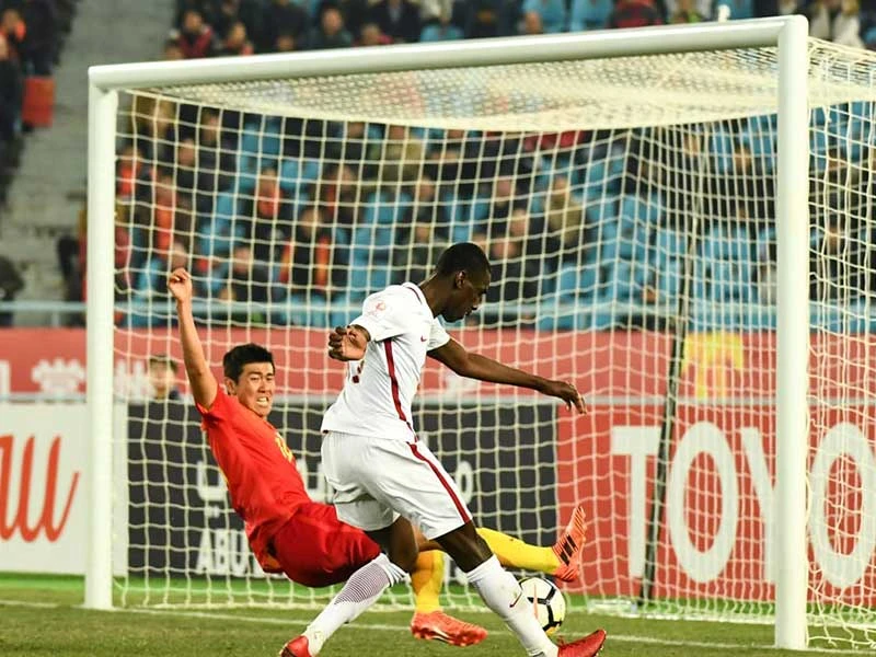 Vua phá lưới Almoez Ali trong trận loại U-23 Trung Quốc từ vòng bảng. Ảnh: AFC