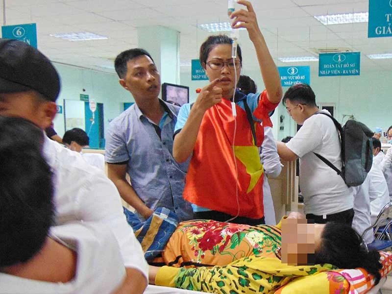 “Tôi ngồi xem bóng đá với bạn bè trong quán nước. Chúng tôi cả thảy gần 10 người đều khoác cờ Tổ quốc để khi Việt Nam vô địch thì “đi bão” một tí. Đang xem giữa hiệp 2 thì điện thoại người nhà gọi tới báo mẹ bị bệnh nên tôi lật đật về đưa mẹ vô BV” - cô gái cho biết.