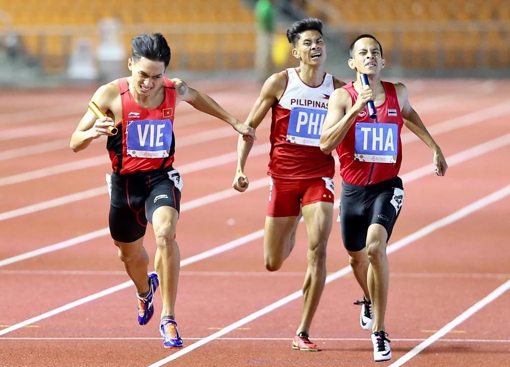 Trần Nhật Hoàng giành 3 HCV chạy các cự ly 400 m cá nhân và tiếp sức tại SEA Games 30. Ảnh: MINH QUANG