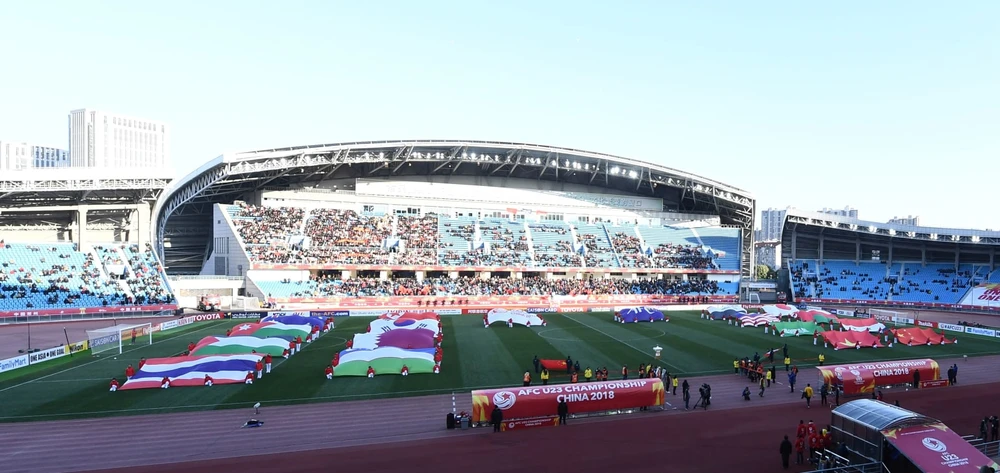 Hình ảnh U-23 Việt Nam đá... trên "mặt ruộng" hồi vòng loại vào tháng 7 năm ngoái tại TP.HCM.