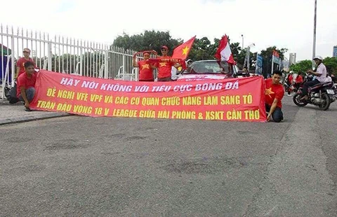 CĐV Hải Phòng bất bình trước thái độ thi đấu của đội nhà và đề nghị BTC phải xử phạt nghiêm minh, tạo niềm tin cho người hâm mộ. Ảnh: CTV