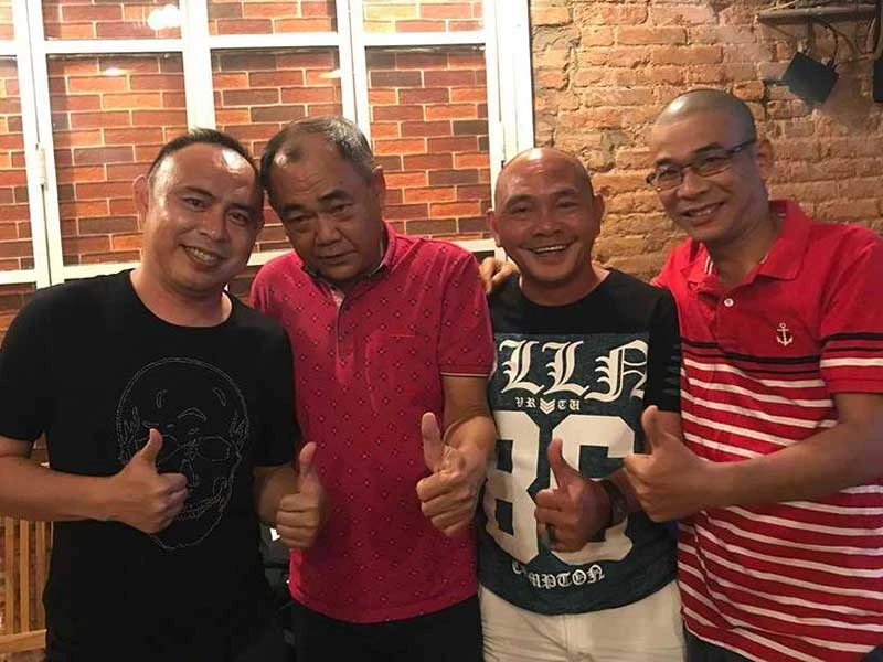 Nghệ sĩ ưu tú Việt Anh (thứ 2 từ trái) và tác giả (bìa phải) tự hào cùng các đồng đội trong đội bóng cựu sinh viên TP.HCM có những “quả đầu” như thầy Park Hang-seo. Ảnh: CSV