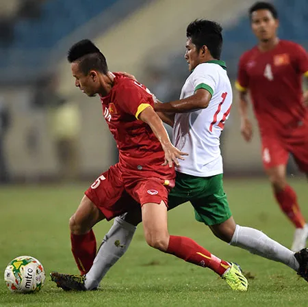 Võ Huy Toàn (trái) ghi bàn duy nhất trận đấu mang về chiến thắng cho U-23 Việt Nam. Ảnh: QUANG THẮNG