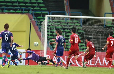 Thế rồi U-23 Nhật vẫn có thời cơ chứng minh đẳng cấp của mình từ một pha độc diễn của tiền đạo Nakajima qua hai cái bóng trung vệ rồi sút tung nóc lưới Phí Minh Long.