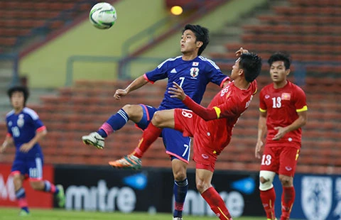 Cuộc chiến không cân sức nhưng tinh thần chiến đấu ngoan cường của các cầu thủ Việt Nam đã gây khó cho đội đầu bảng Nhật. Ảnh: ANH ĐỒNG