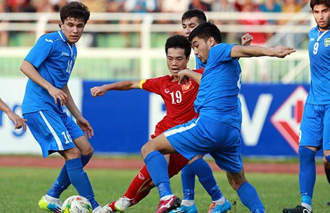 Đội tuyển U-23 Việt Nam có thừa nỗ lực và dám chơi lăn xả nhưng thể hình, thể lực yếu hơn U-23 Uzbekistan nên các pha đấu tay đôi thường thua thiệt.