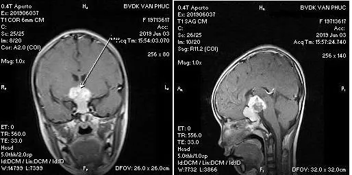 Hình ảnh MRI phát hiện khối u kích thước 27mm x 14mm ở vị trí sọ hầu của bé gái 9 tuổi. Ảnh: BV cung cấp