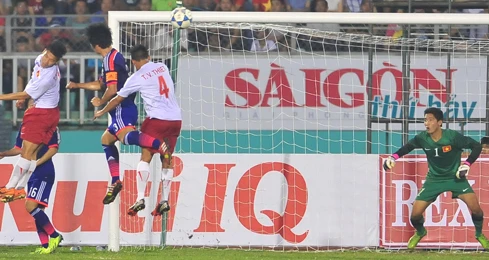 Phút 63, cầu thủ Nhật Bản lừa qua cả thủ môn Văn Trường nhưng rất may hậu vệ VN kịp lao ra phá bóng ngay trong chân cầu thủ Nhật.