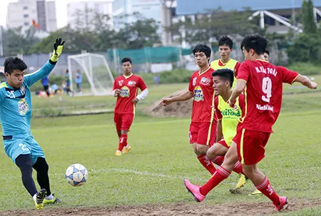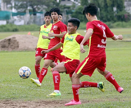 Các cầu thủ U21 HAGL tích cực tập luyện chuẩn bị cho cuộc chiến một mất một còn với U21 Myanmar.