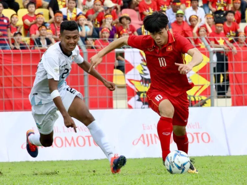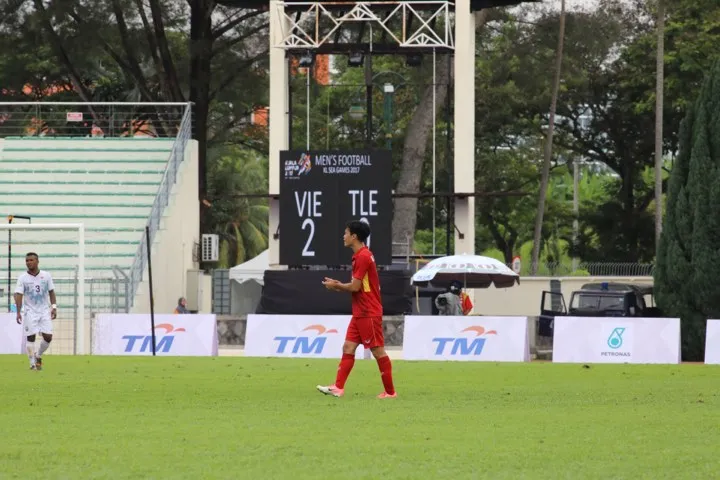 Phút 29, Công Phượng có pha thoát xuống nhưng sút bóng quá nhẹ, bóng đi ngay vào tay thủ thành Đông Timor.