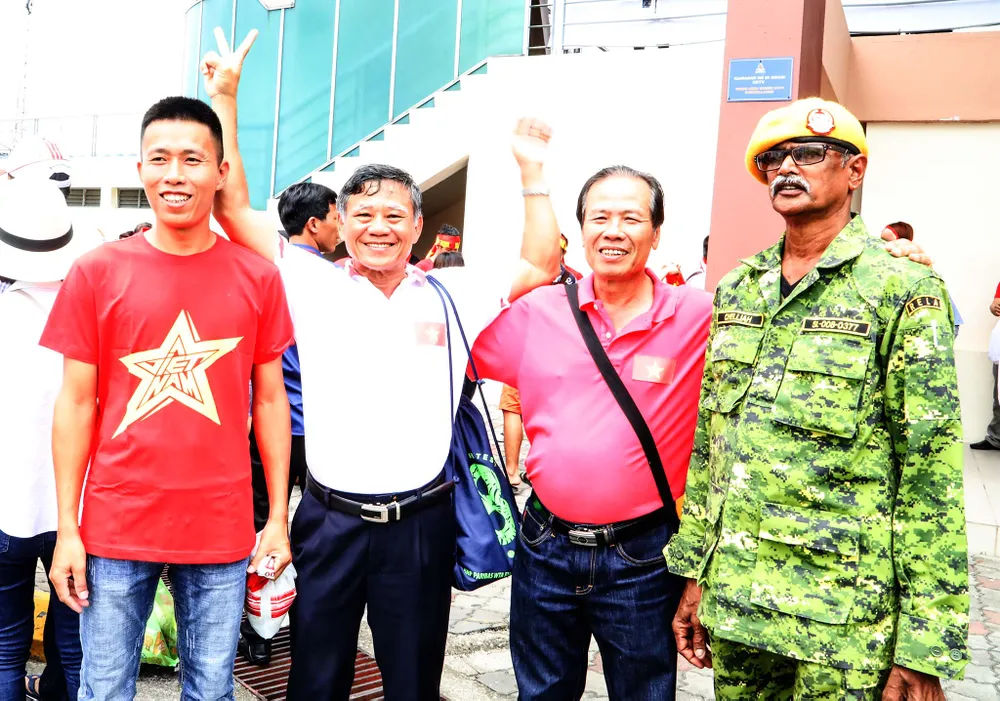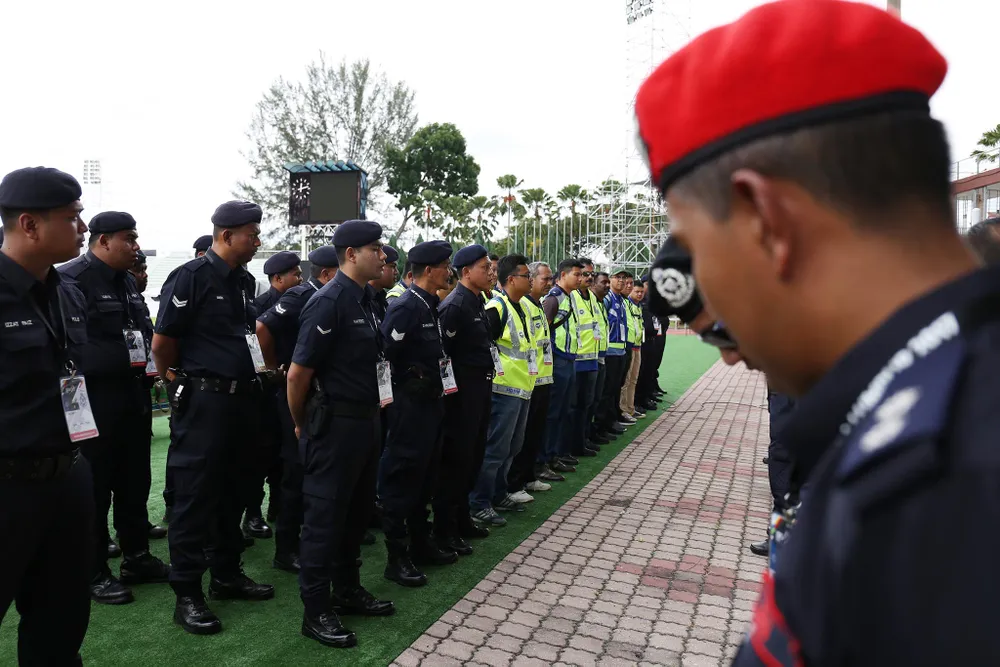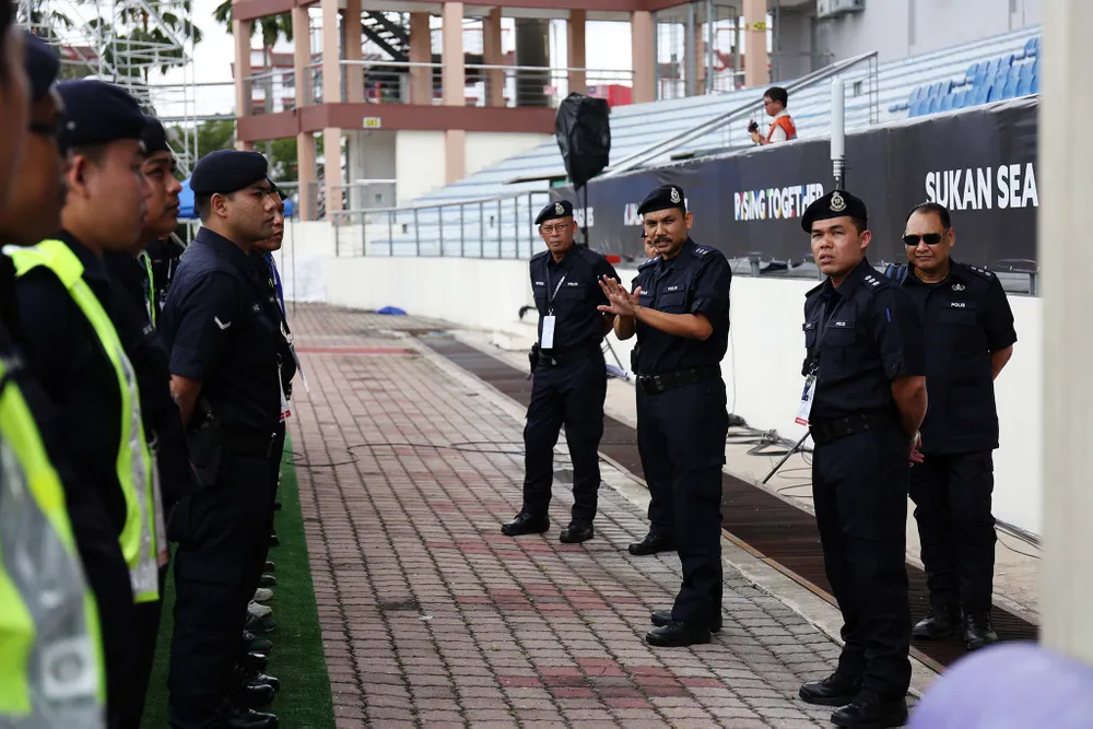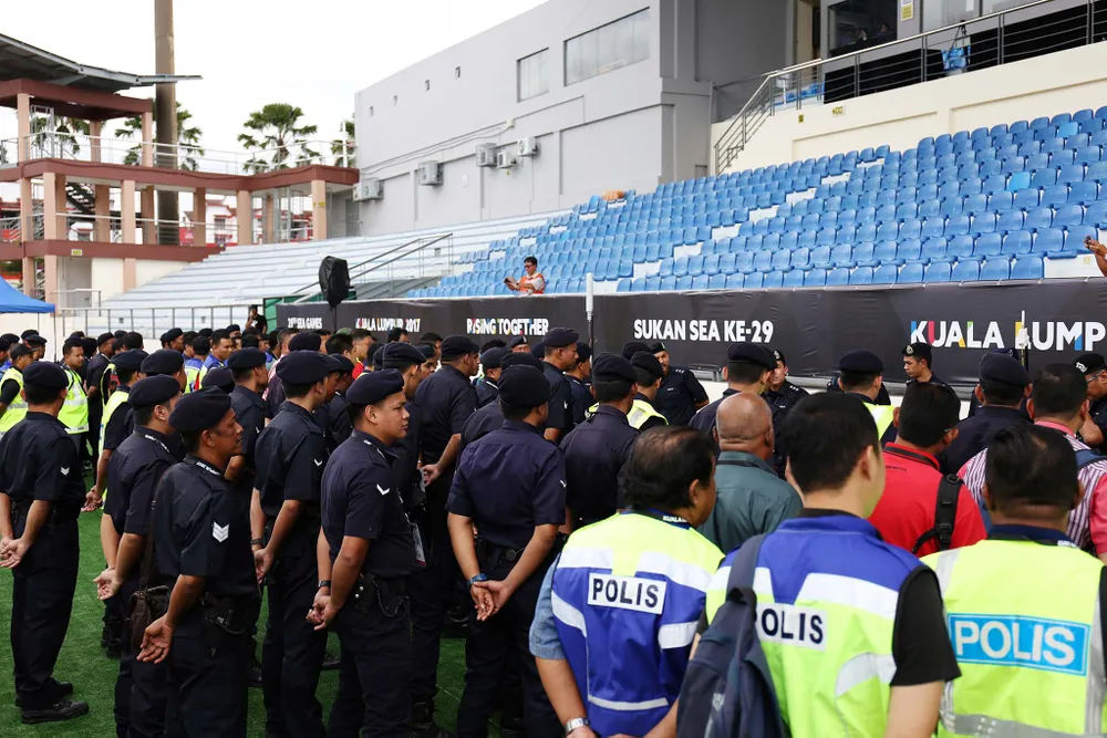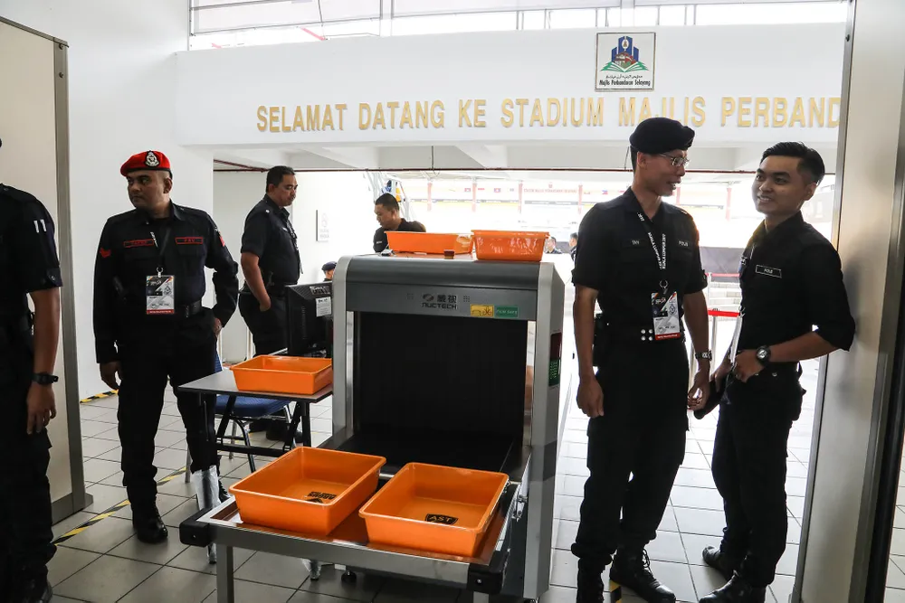 Phía trong và ngoài sân vận động Selayang tình trạng an ninh được nước chủ nhà Malaysia siết chặt ở mức cao nhất . Tất cả mọi người đều phải đi qua cổng an ninh kể cả thành phần BHL đội tuyển Việt Nam.