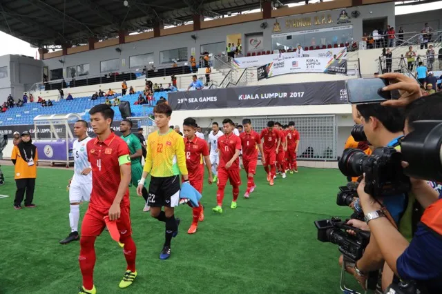 Phía trong sân diễn ra trận đấu đầu tiên tại SEA Games 29 của U-22 Việt Nam.