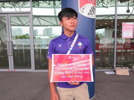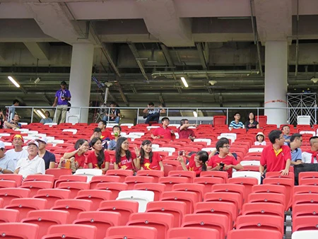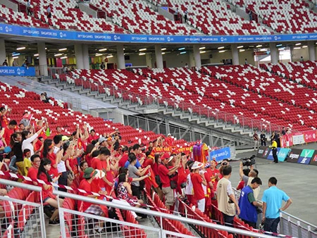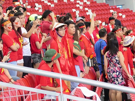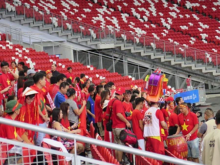 Một nhóm cổ động viên có mặt trên khán đài cổ vũ cho U23 Việt Nam. Ảnh: CÔNG TUẤN.
