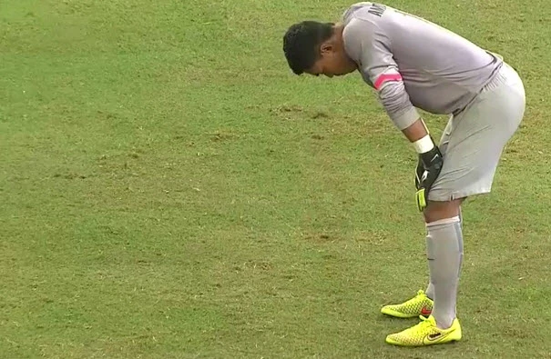 Thủ môn Indonesia thất vọng sau bàn thua thứ 3.