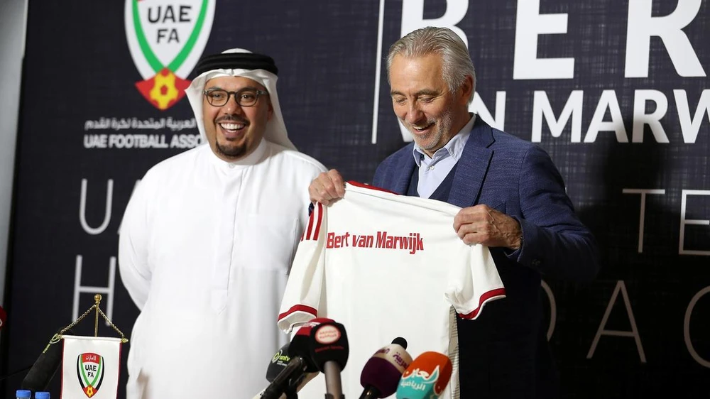 HLV Bert van Marwijk tại lễ ra mắt đội tuyển UAE. ẢNH: GETTY IMAGES