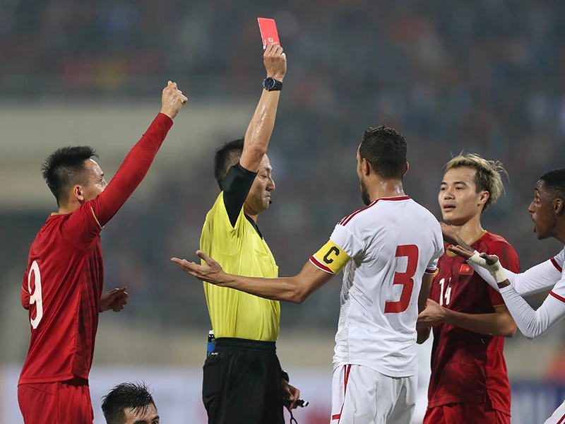 UAE trong trận thua Việt Nam 0-1 tại lượt đi vòng loại World Cup 2022 bảng G. Ảnh: NGỌC DUNG