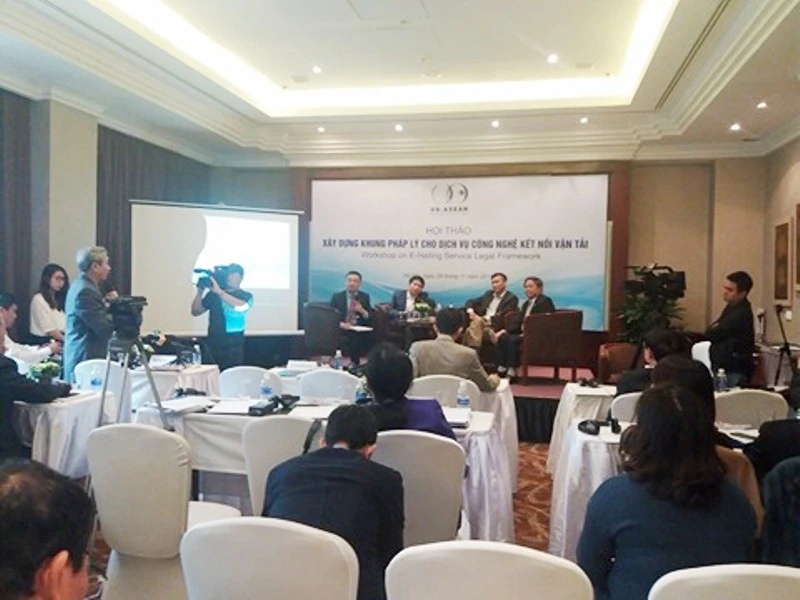 Hội thảo tranh luận tương đối căng thẳng giữa hai bên Uber, Grab và taxi truyền thống. Ảnh: V.LONG