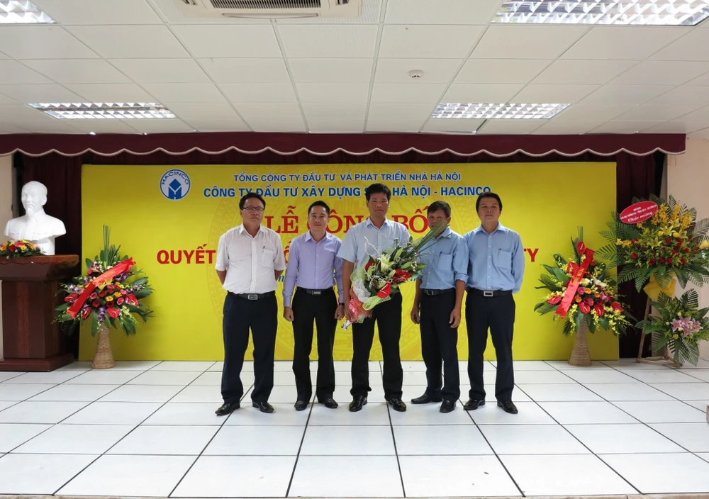 Ông Nguyễn Văn Thanh, Giám đốc Hacinco, người cầm hoa đứng giữa (Ảnh Hacinco)
