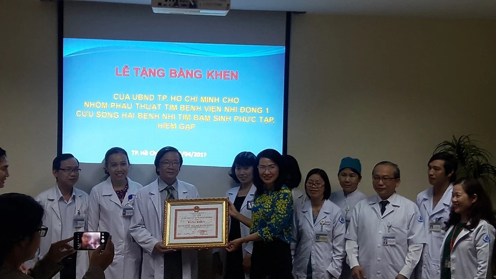Phó Chủ tịch TP đã trao bằng khen khen ngợi tập thể bệnh viện, đồng thời thưởng nóng 10 triệu đồng cho êkíp bác sĩ BV Nhi đồng 1.