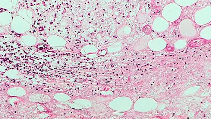 Dấu hiệu đầu tiên của căn bệnh là một vết sưng không đau trên da thường bị nhầm là vết côn trùng cắn. Tuy nhiên, vài tháng sau, những vết loét trông như “miệng núi lửa” sẽ xuất hiện và lan rộng. Người bệnh cảm thấy vô cùng đau đớn khi vi khuẩn xâm nhập, gặm nhấm qua da, mao mạch, phá hủy hệ miễn dịch và dẫn đến hoại tử, tổn thương xương. Nếu không được điều trị kịp thời , một số trường hợp buộc phải cắt bỏ chi.