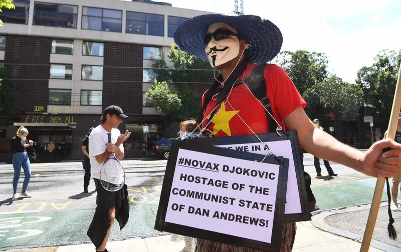 Những người ủng hộ Djokovic đưa thông điệp Úc cư xử mang màu sắc chính trị. Ảnh: Getty
