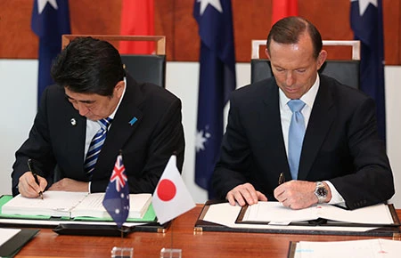 Trả lời báo The Australian (Úc) ngày 8-7 về hai thỏa thuận vừa ký, Thủ tướng Shinzo Abe nhận định thỏa thuận đối tác kinh tế rất quan trọng với Nhật, đặc biệt khi Úc là đối tác thương mại lớn nhất Nhật từng ký.