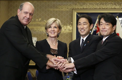 Cuộc đối thoại 2+2 giữa Nhật và Úc đã diễn ra tại thủ đô Tokyo ngày 11.6, với sự tham gia của Ngoại trưởng Nhật Fumio Kishida và Bộ trưởng Quốc phòng Itsunori Onodera, cùng hai người đồng cấp Úc tương ứng là Julie Bishop và David Johnston.