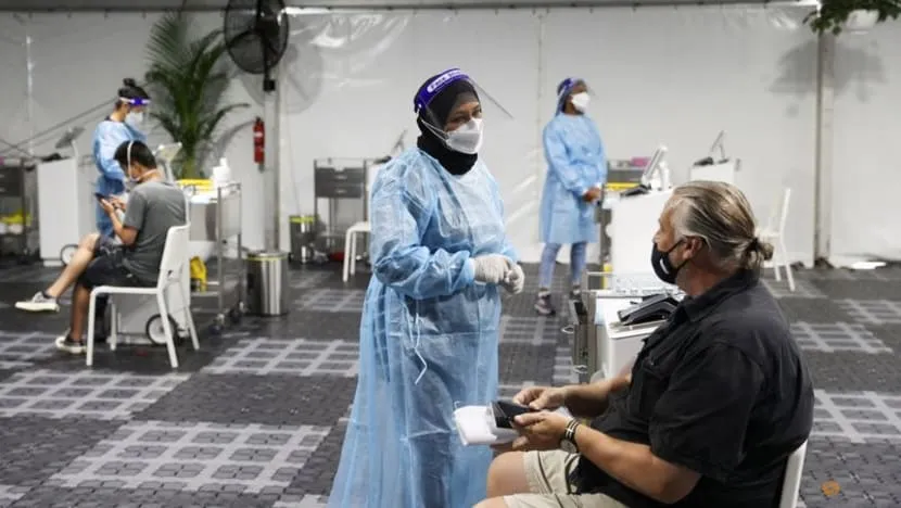 Nhân viên y tế Úc xét nghiệm cho du khách tại sân bay Sydney. Ảnh: REUTERS